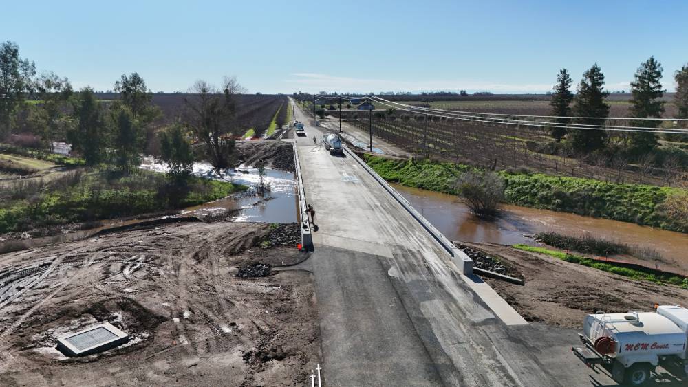 This project involves replacing the existing bridge with a cast-in-place, prestressed concrete slab bridge and replacing approximately 560-feet of Burchell Avenue with Class 2 aggregate base and hot mix asphalt, and rock slope protection. This project also included the extensive work and coordination with MID. The improvements included extension and upgrading multiple MID structures and pipes. This included hundreds of feet of 42” RCP, four stand pipes, a 5’ x 5’ concrete junction box, and a 12’ tall concrete outlet structure with weir blades and concrete ditch lining.