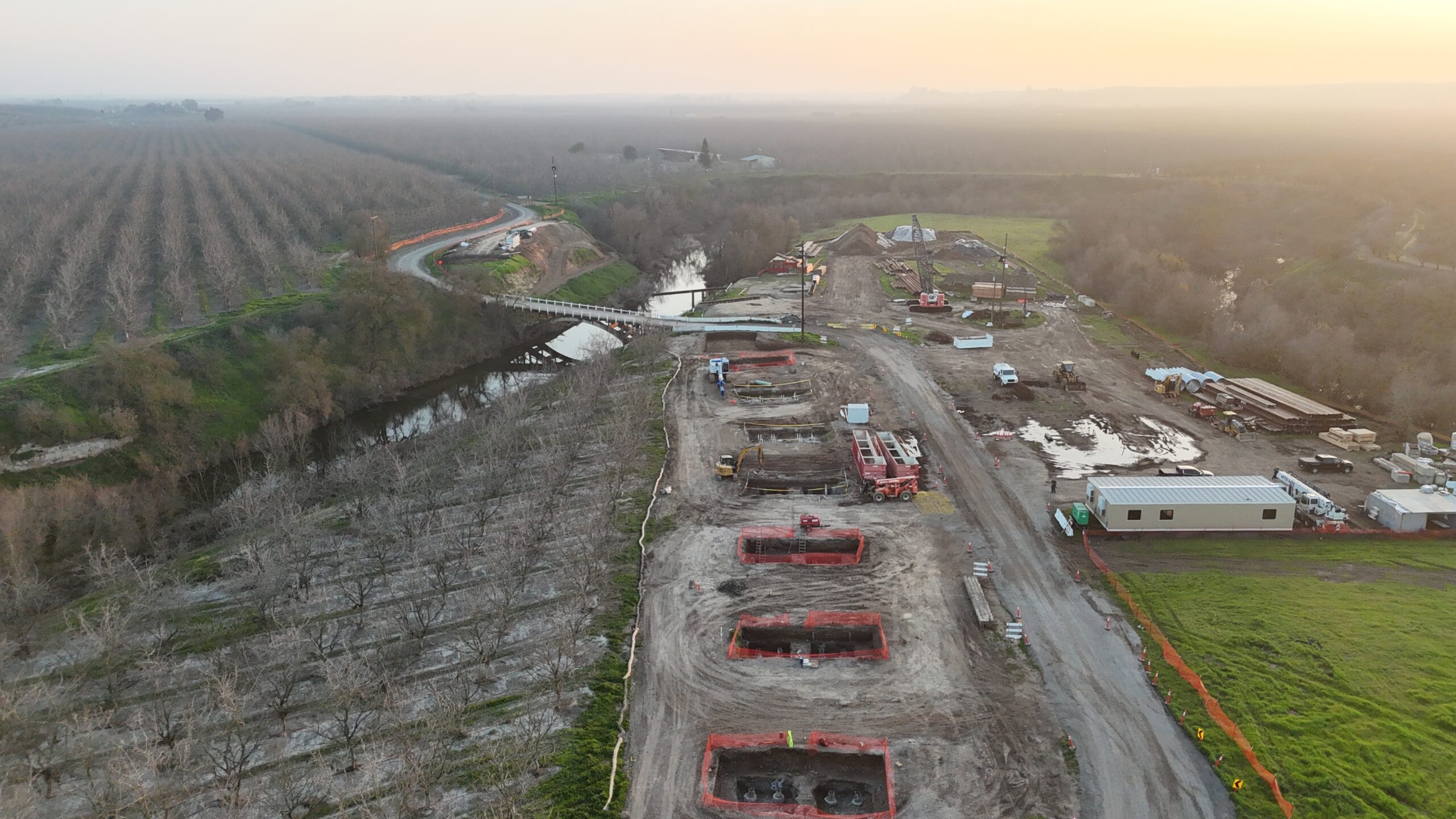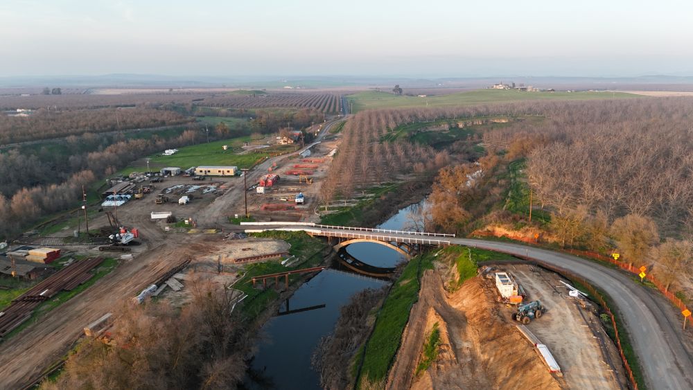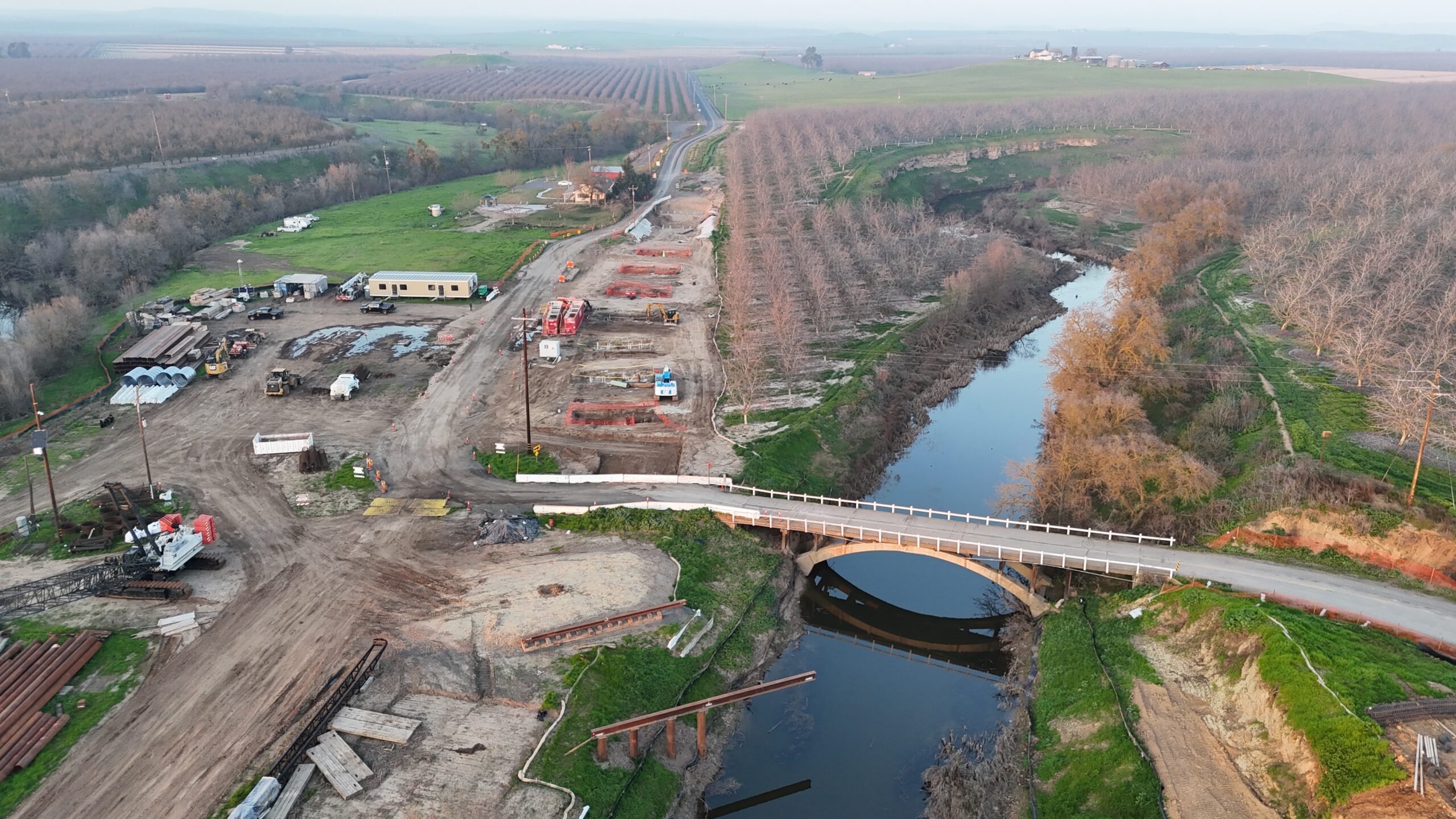 CCME is providing construction management and inspection services for the Tim Bell Road Over Dry Creek Bridge Replacement project. The project involves constructing a 13-span, 960-foot-long, arched cast-in-place, post-tensioned box girder bridge supported on cast-in-drilled-hole (CIDH) piles. The new structure will clear-span both the ordinary high-water mark of Dry Creek and an adjacent oxbow lake formed by extreme flooding events. It will be constructed just downstream of the existing 140-foot-long concrete arch bridge, which features a wood spandrel system and a corrugated metal deck supported by spread footings. The new foundation will consist of CIDH piles up to 72 inches in diameter and 67 feet in length.